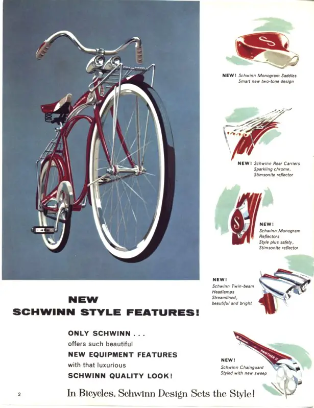 The “Schwinn Look” –that combination of fine quality and graceful styling-has set bicycle style trends year after year-always imitated but never equalled!